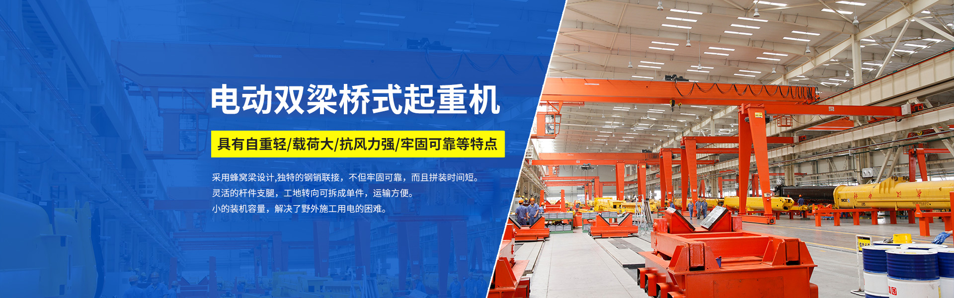 在野外施工場景中,用電往往是一大難題,而杭州起重機(jī)推出的電動(dòng)雙梁橋式起重機(jī),為解決這一問題帶來了... 了解詳細(xì)>>2025-09-15杭州起重機(jī):電動(dòng)雙梁橋式起重機(jī),自重輕與載荷大的巧妙融合